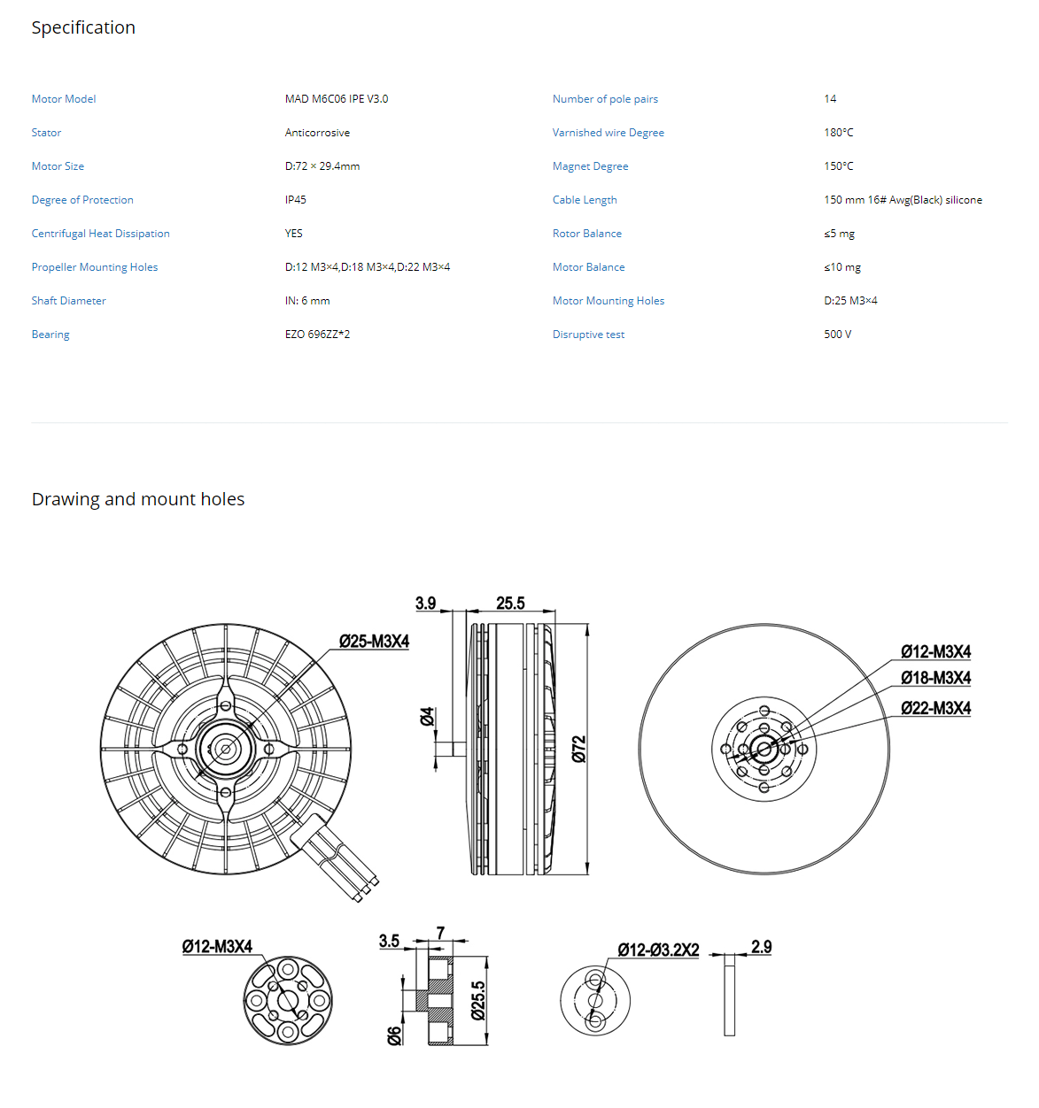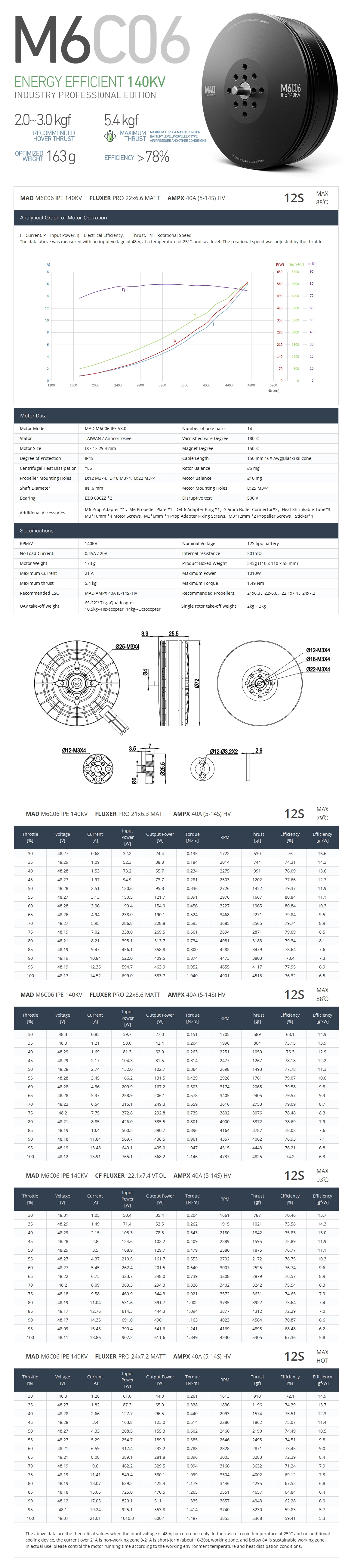 The upgrade M6C06 IPE V3 has been improved to achieve higher reliability and stability for long range flights. It also retains the excellent features and characteristics of the previous generation and improves motor safety and life, fully meeting the demanding requirements.