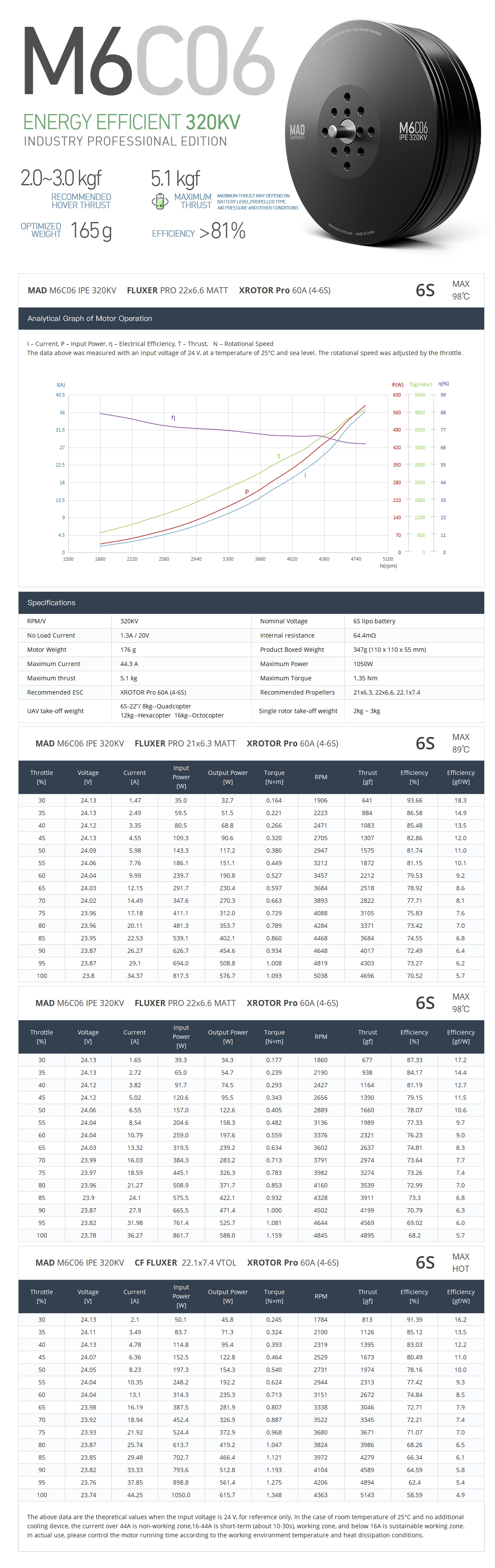 M6C06 IPE is designed to carry a payload of 1.4-2.5kg and supports 6S, 8S, 12S voltages.