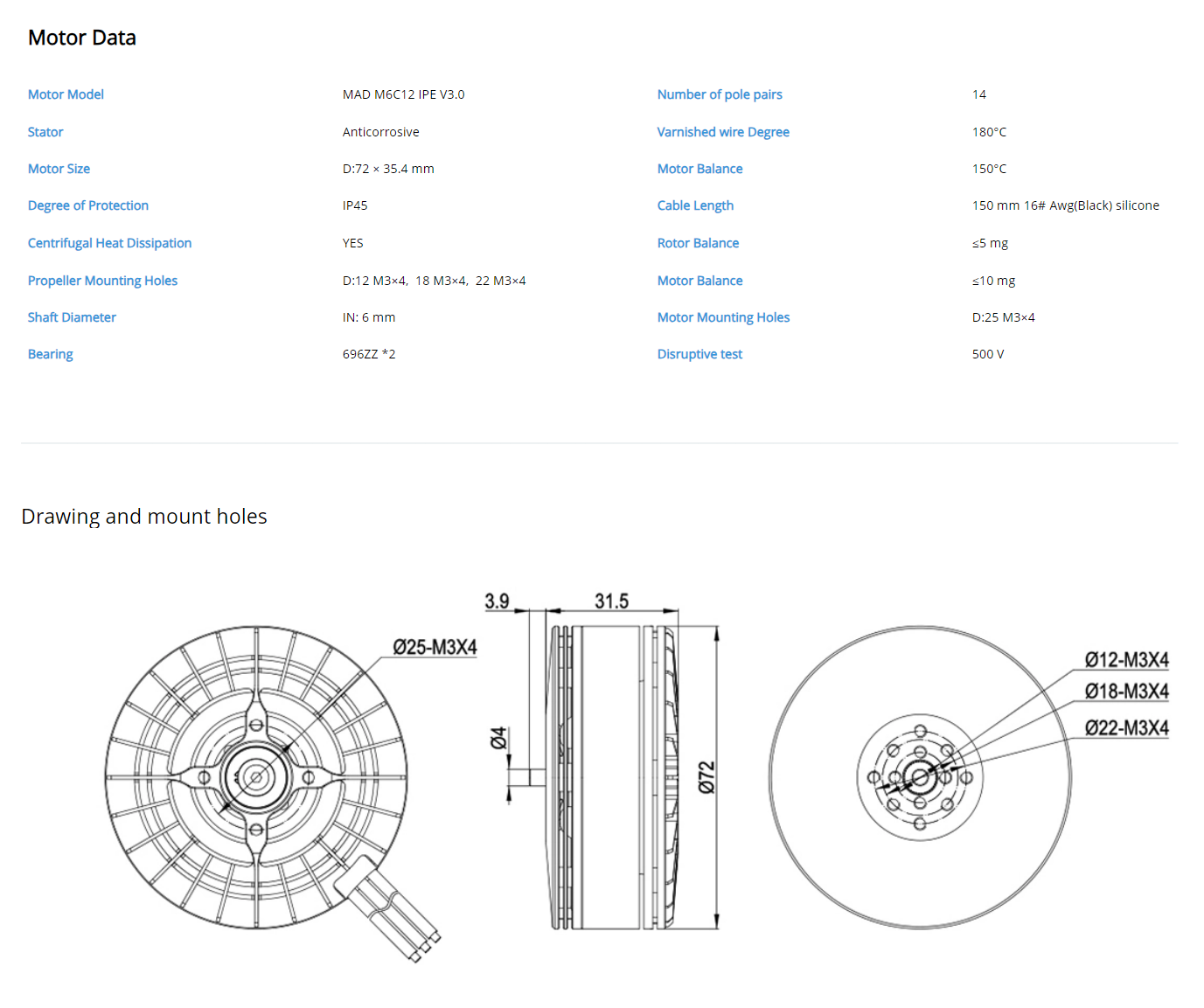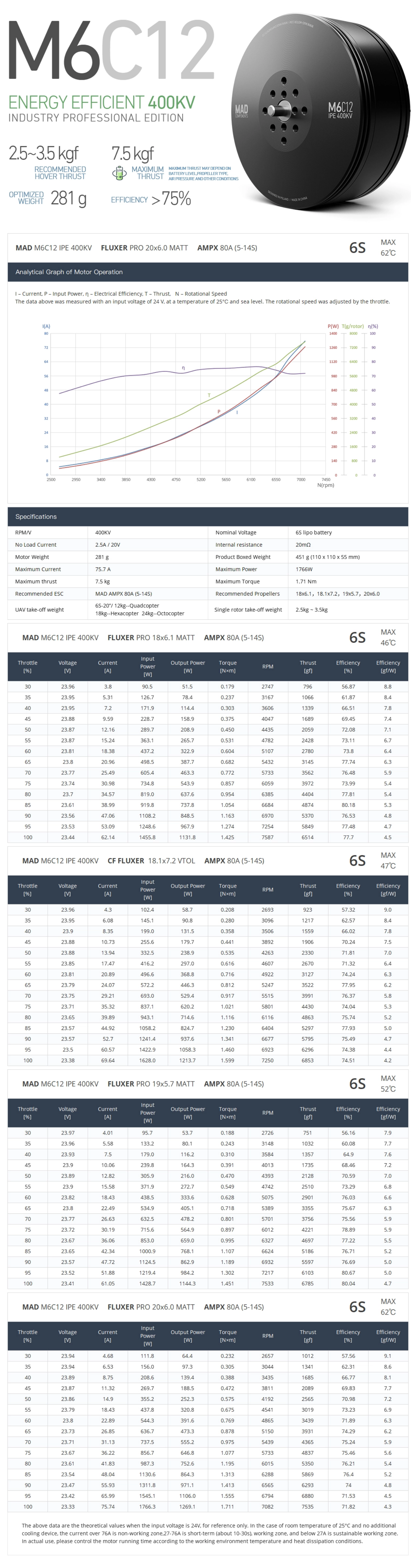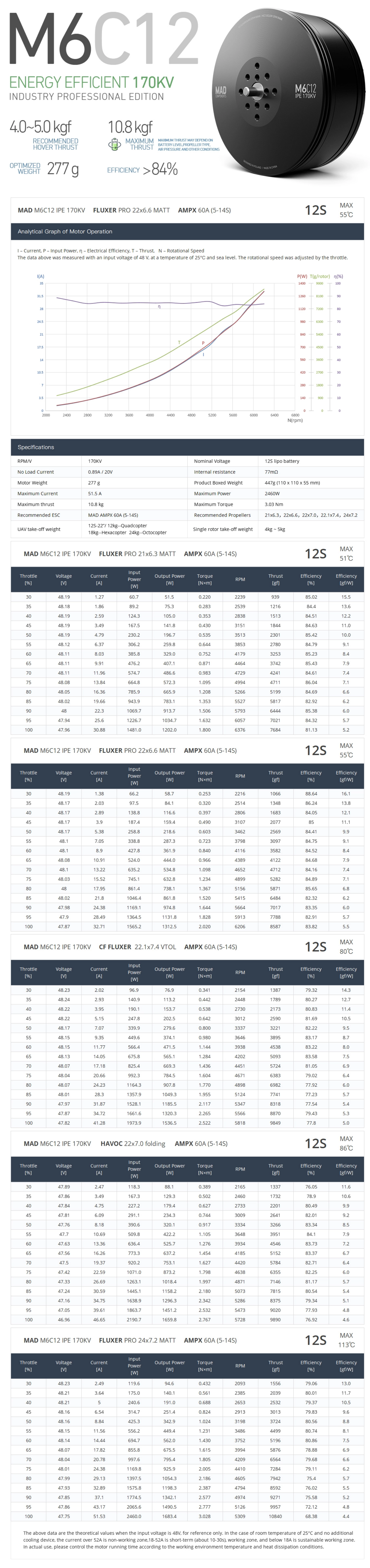 The M6C12 IPE is designed for a payload of 2.5-4kg and supports 6S-12S voltage.