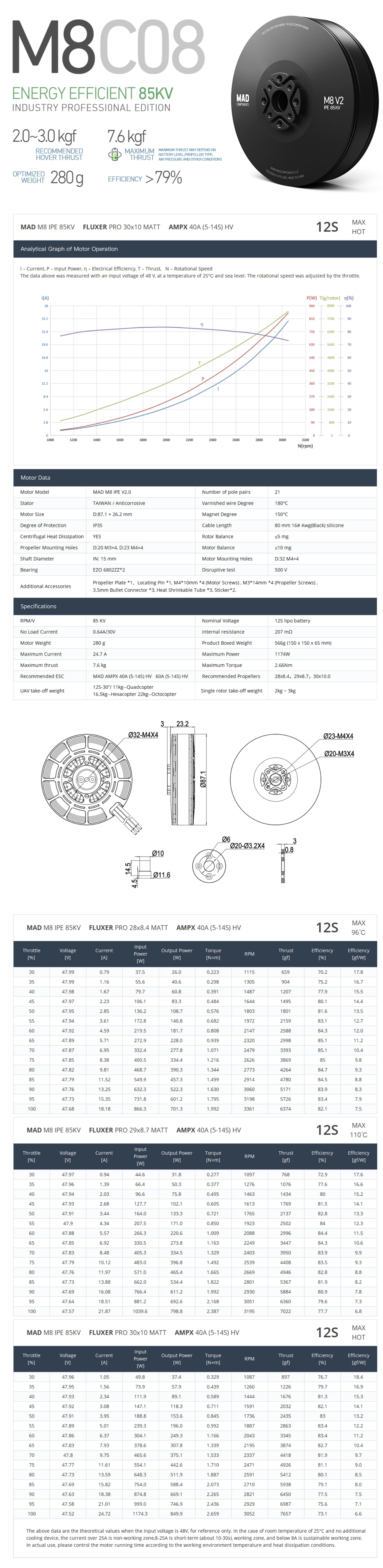 M8 IPE V2 is the latest version of MAD 8108 IPE, more efficient and lighter, great for endurance flights.