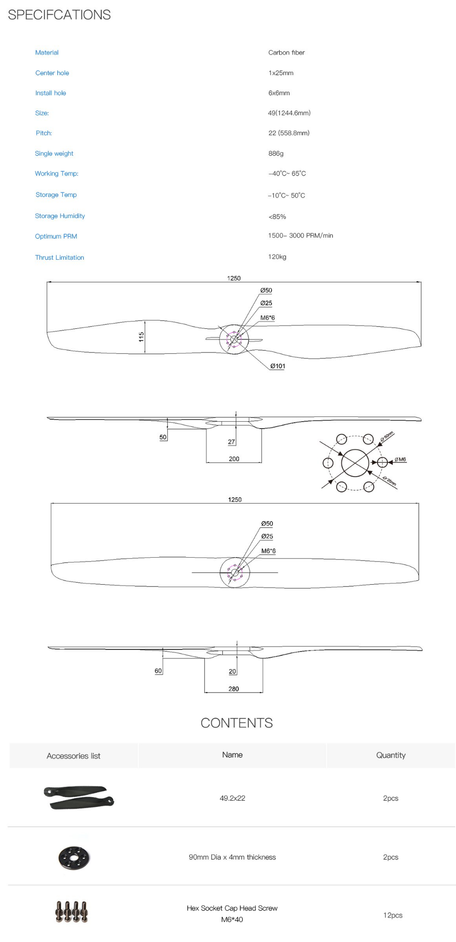 49.2x22 (1250MM) FLUXER PARAMOTOR E-PROPS carbon fiber propeller - Unmanned RC