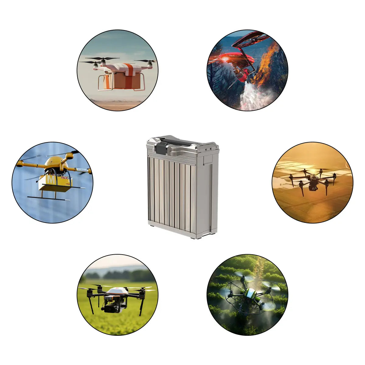 18S34Ah battery is the first agricultural dual-ended pole lugs, low temperature rise, high current. Skeleton design, extreme heat dissipation, new upgraded glue filling process, weight reduction and waterproof, high energy density of finished products. High capacity, high multiplier (70 degrees high temperature 5C charging) to realize the efficient cyclic operation of the landing that is charging; long life, provide more durable energy support for plant protection drone