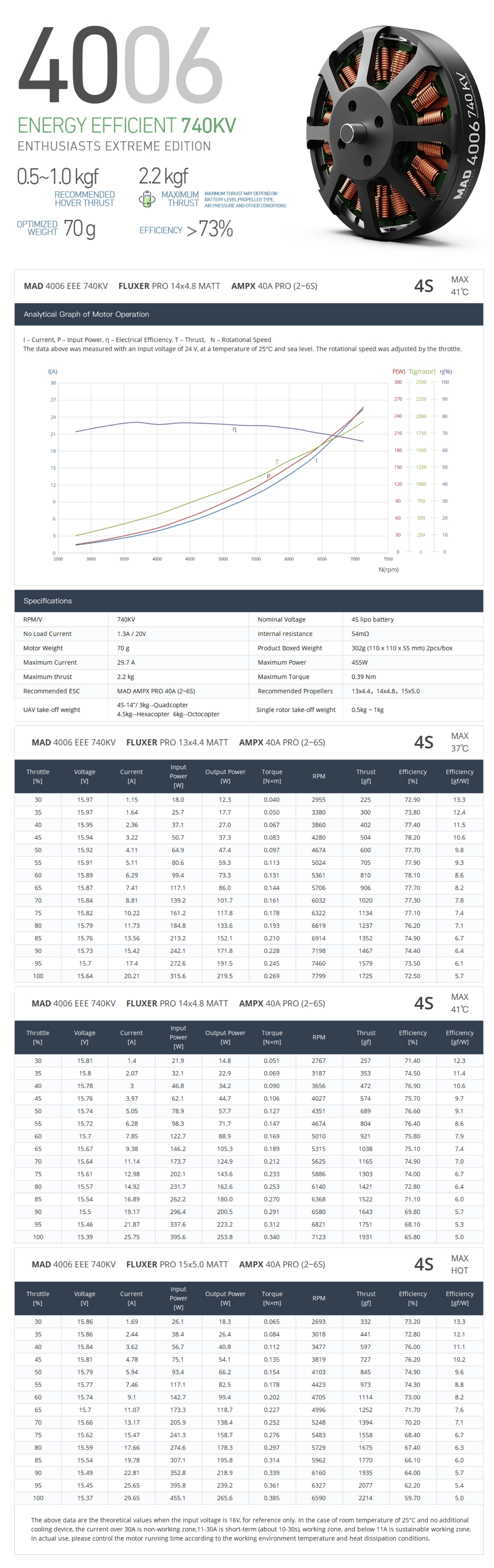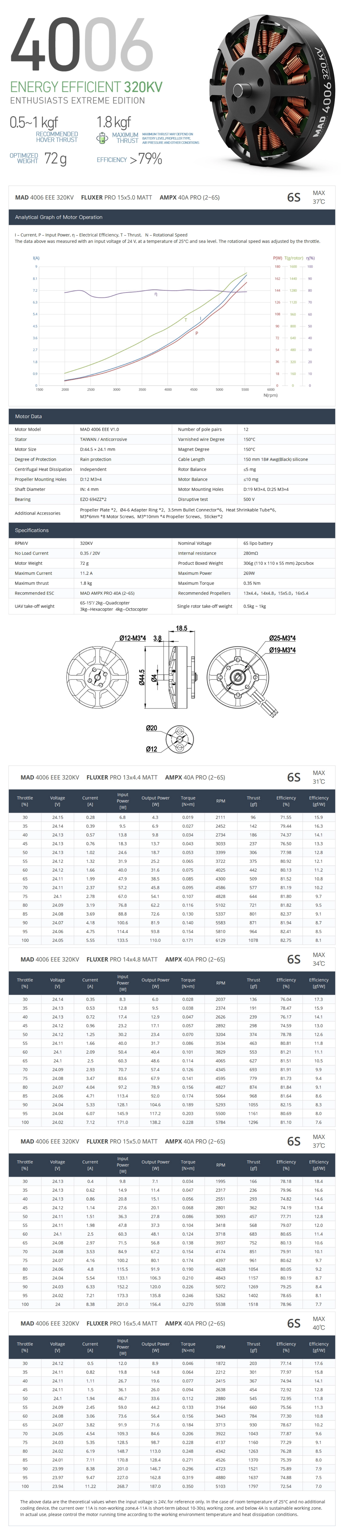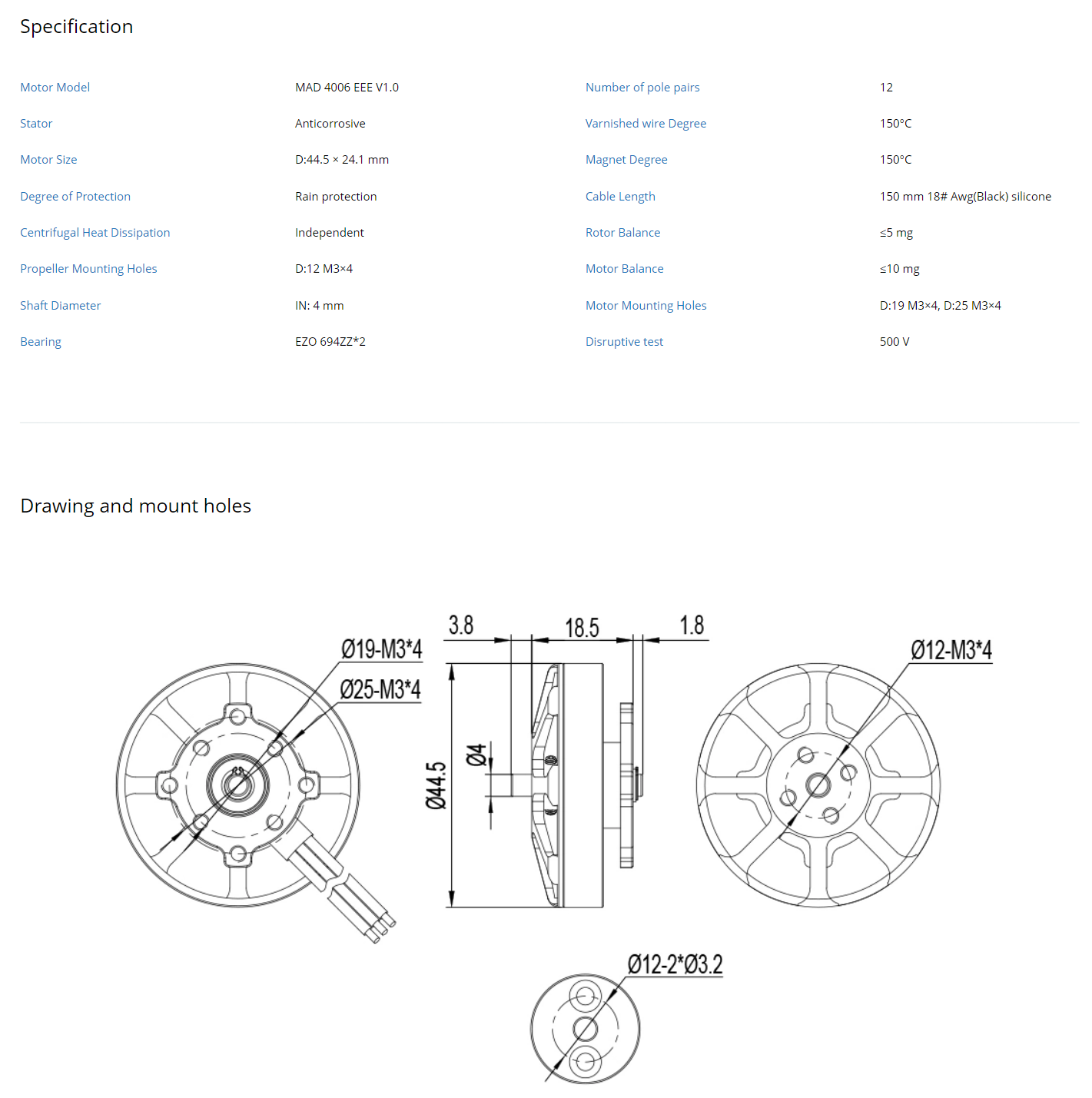 MAD 40 series motors are the classic UAV motors for small to medium industrial use, efficient and for endurance flights. Motors of this size have been on the market for 10 years, MAD Components has optimised them to be very lightweight.