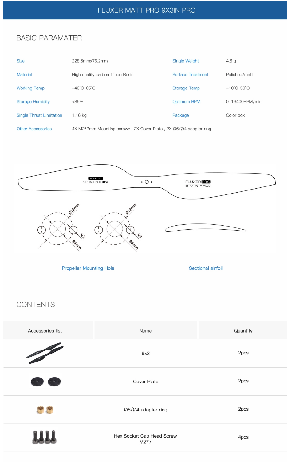 9x3 inch FLUXER PRO MATT carbon fiber propeller - Unmanned RC