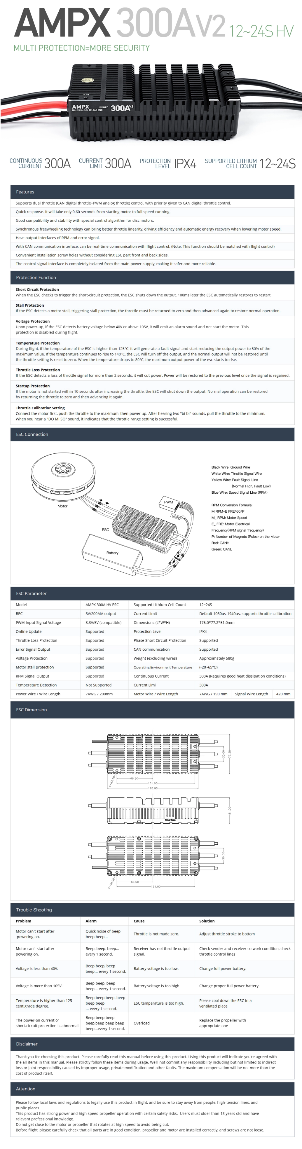 This v1.0 ESC is the product before v2.0 with CAN came out , and the information is retained for customers who purchased this product before to find the information. We recommended that new users purchase V2.0 for UAV projects and PPG customers purchase V3.0.
