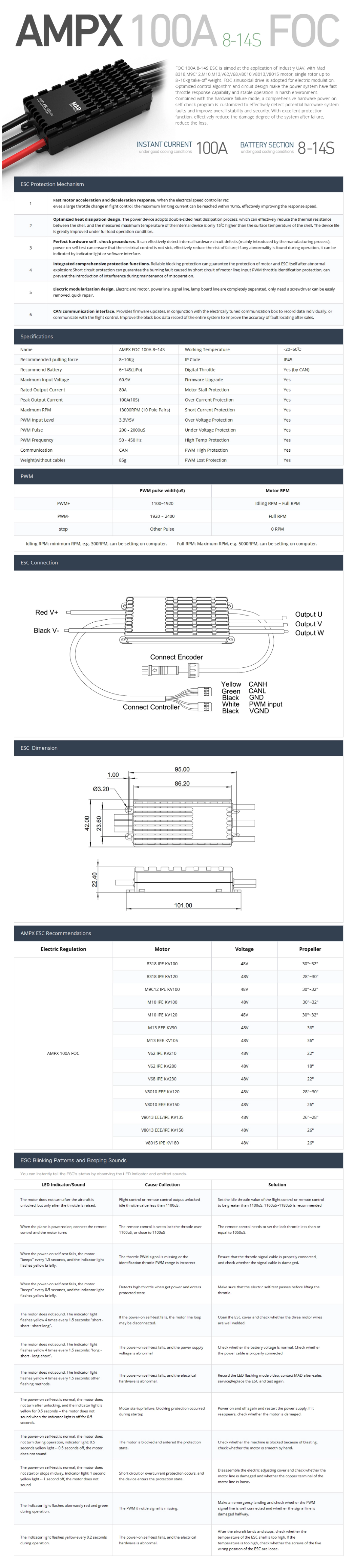FOC 100A 8-14S Drone ESC