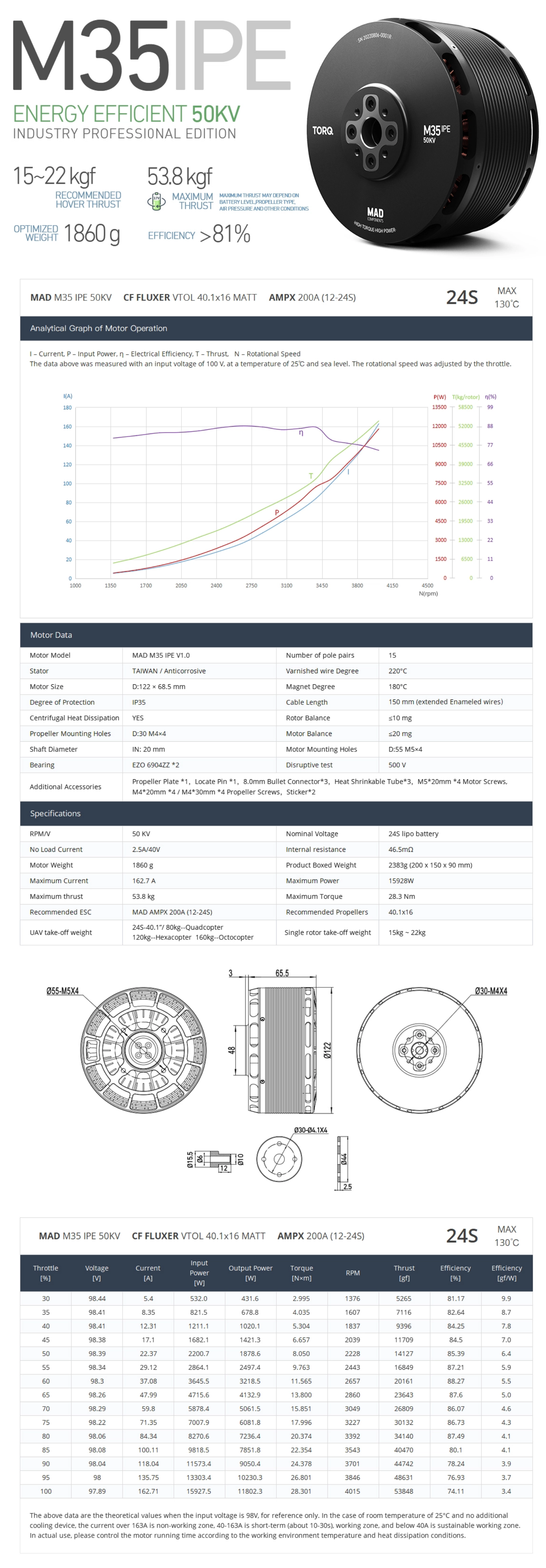 M Series motors are the flagship motors designed specifically for large multi-rotor electric paragliders, large agricultural tethered VTOLs and UAVs. Used for aerial photography, mapping, electric paragliding, agricultural spraying, surveying and anything in between where professional industrial grade propulsion is required. This type of motor is built with industrial grade components for an unmanned VTOL / Multi-Copter (Hexa,Octo) Personal Aerial Vehicle (PAV).