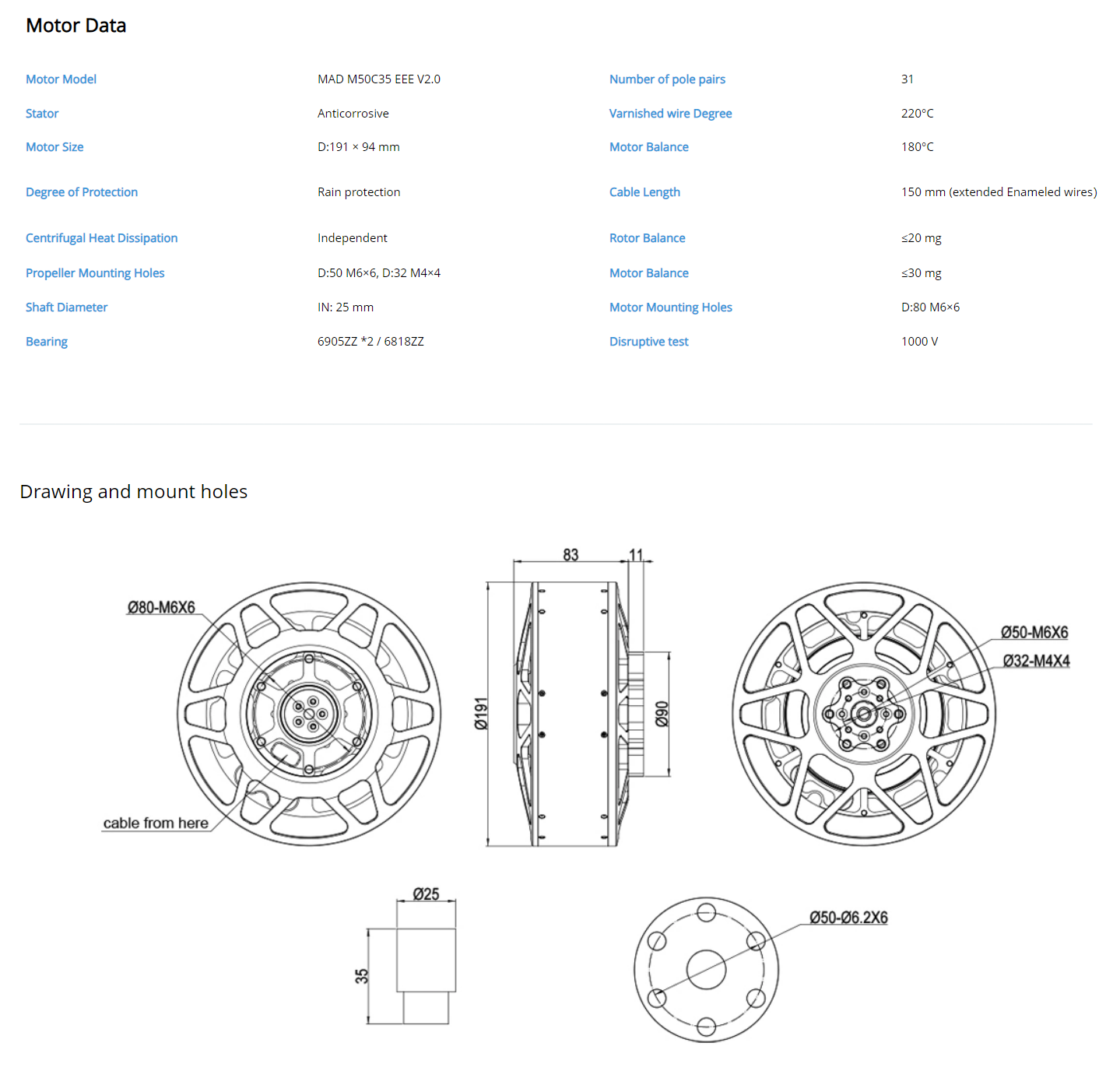 1.The power is 25 KW(40kg continue thrust), which is equal to 29 horsepower.
