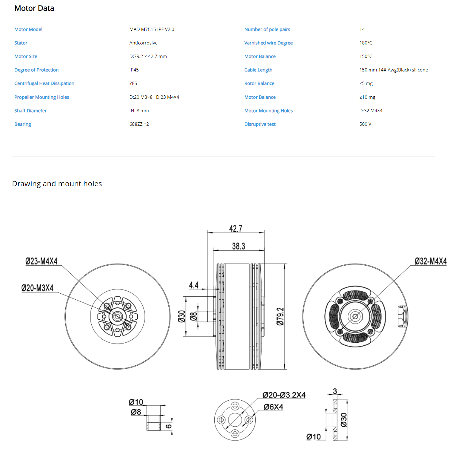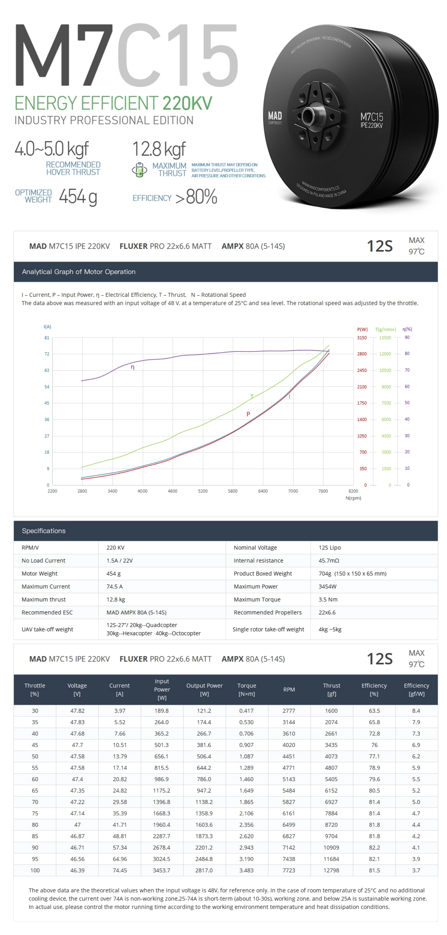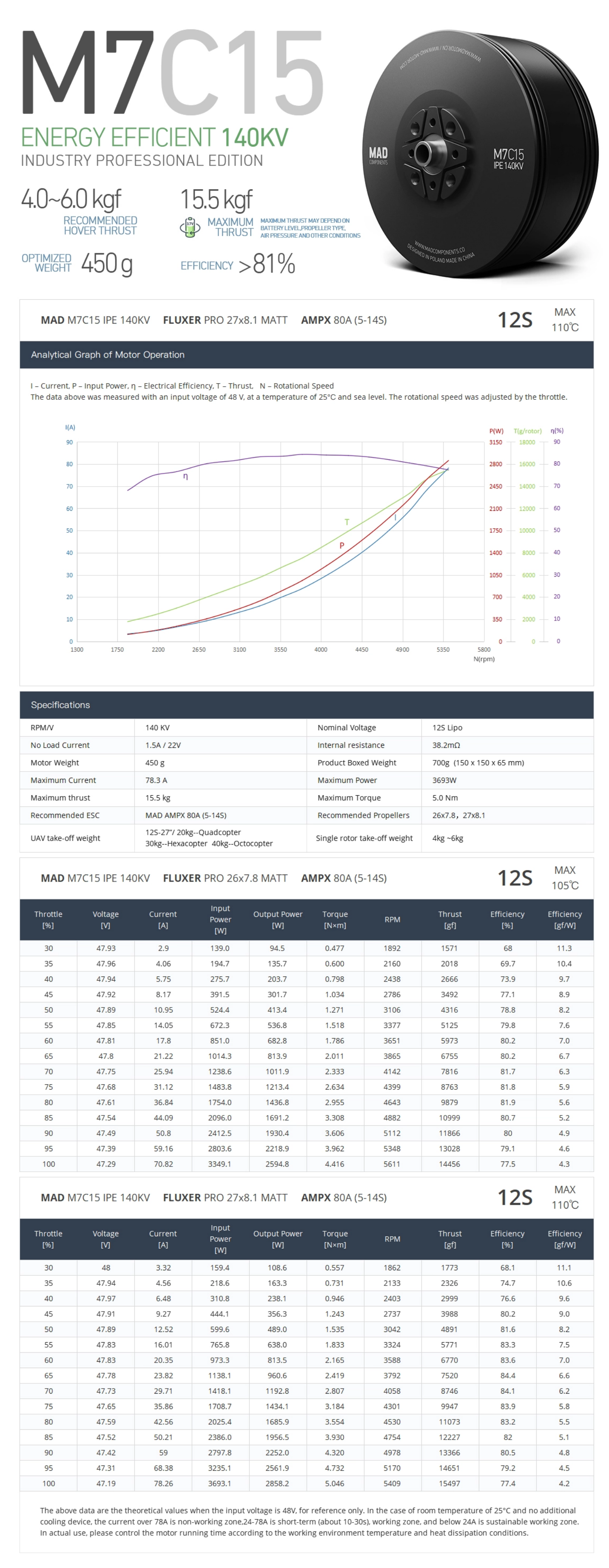 The M7C15 is designed to carry a payload of 4-6kg, supports 12S voltage for heavy hexacopter, octocopter, firefighter drone and tethered drone.
